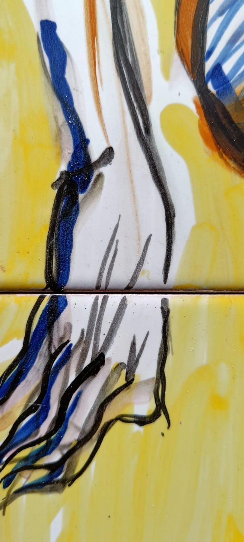 Los azulejos fueron rescatados de una casa que ya no existe. En el proceso, uno de ellos sufrió un pequeño picotazo en una de sus esquinas, una herida mínima que lejos de restar valor a la obra, suma historia y autenticidad. Como cicatriz de su propio viaje, ese detalle recuerda el carácter frágil y resistente del arte cuando sobrevive al tiempo y al olvido.