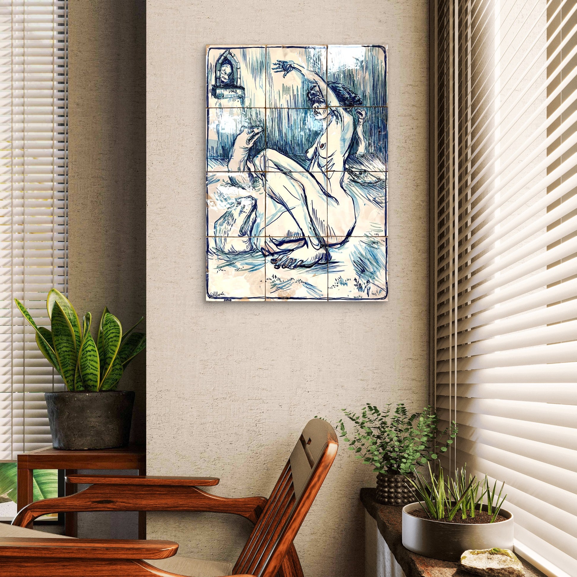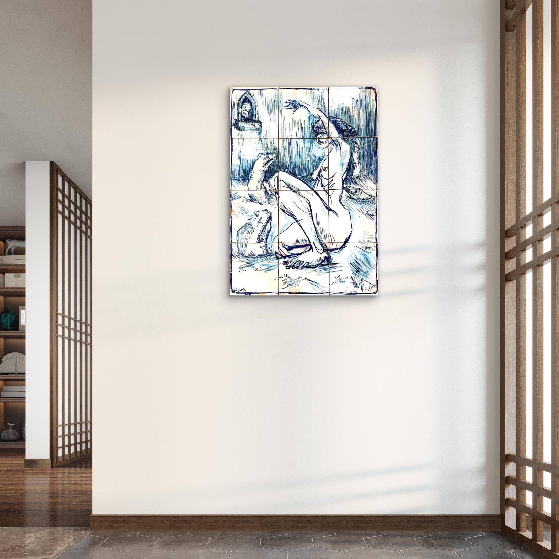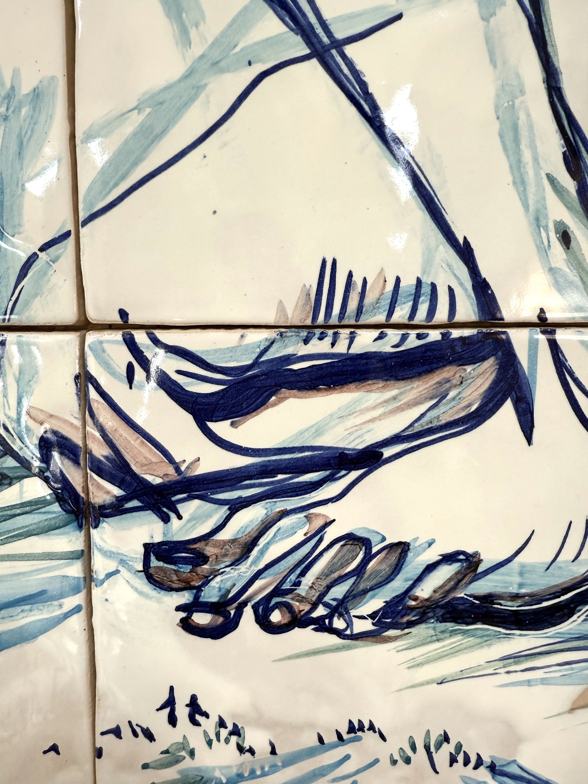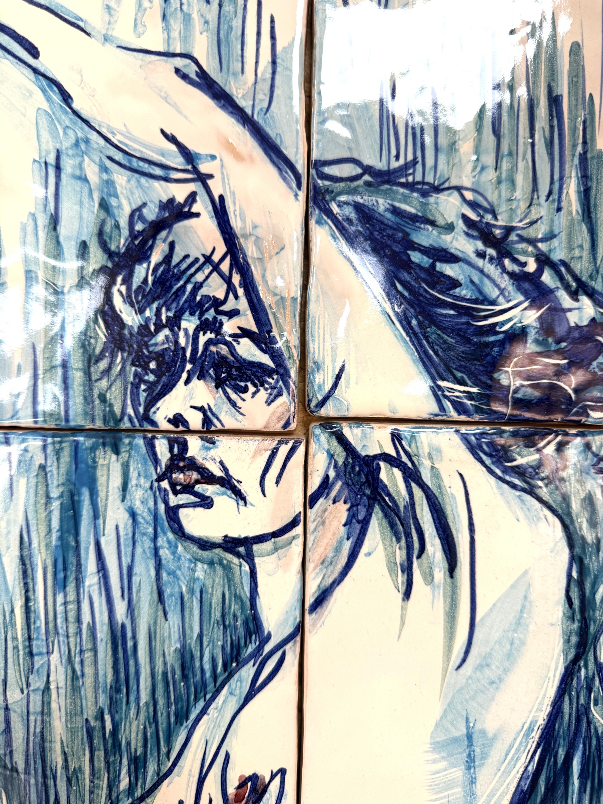 Técnica: Esmalte sobre cubierta sobre bizcocho de 20 x 20 x 0,2 cm de barro blanco.