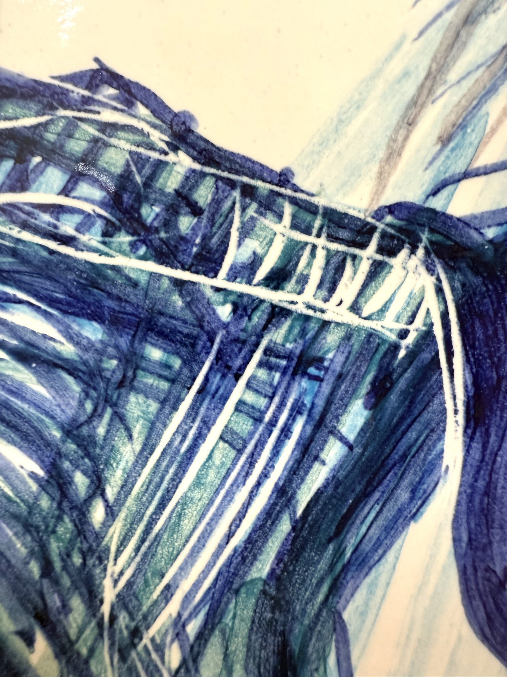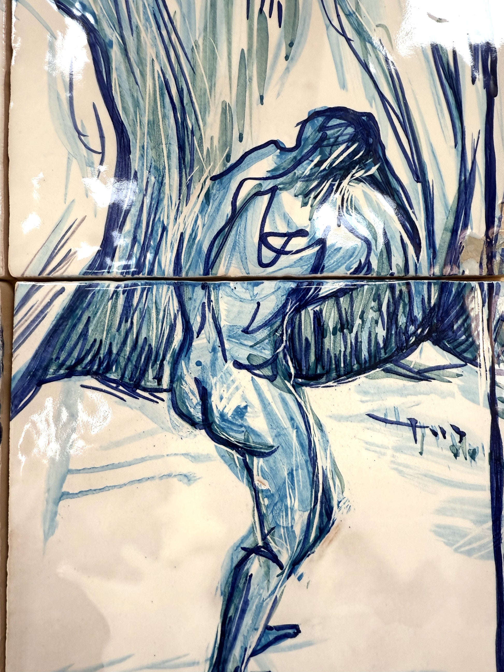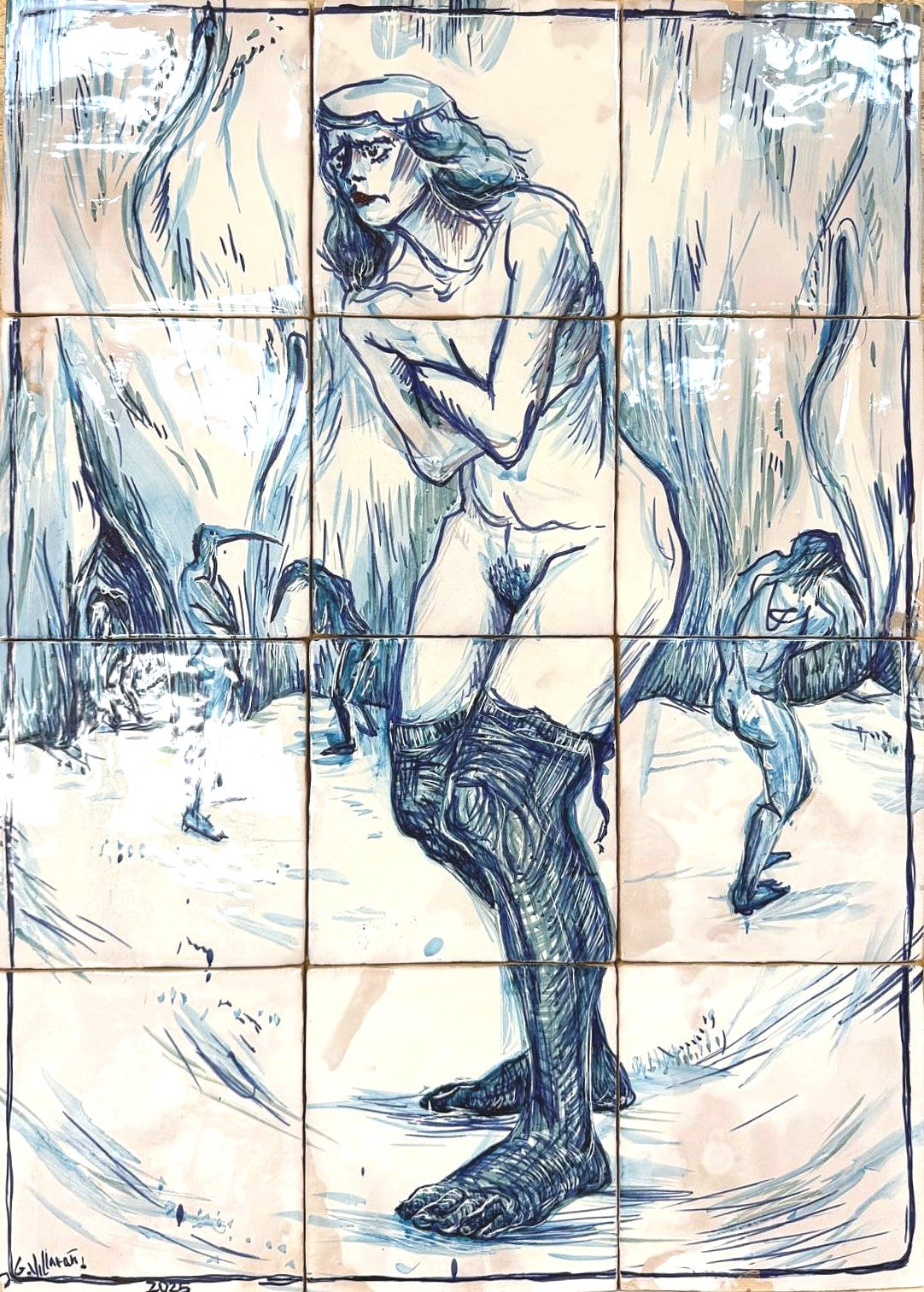 Técnica: Esmalte sobre cubierta sobre bizcocho de 20 x 20 x 0,2 cm de barro blanco.