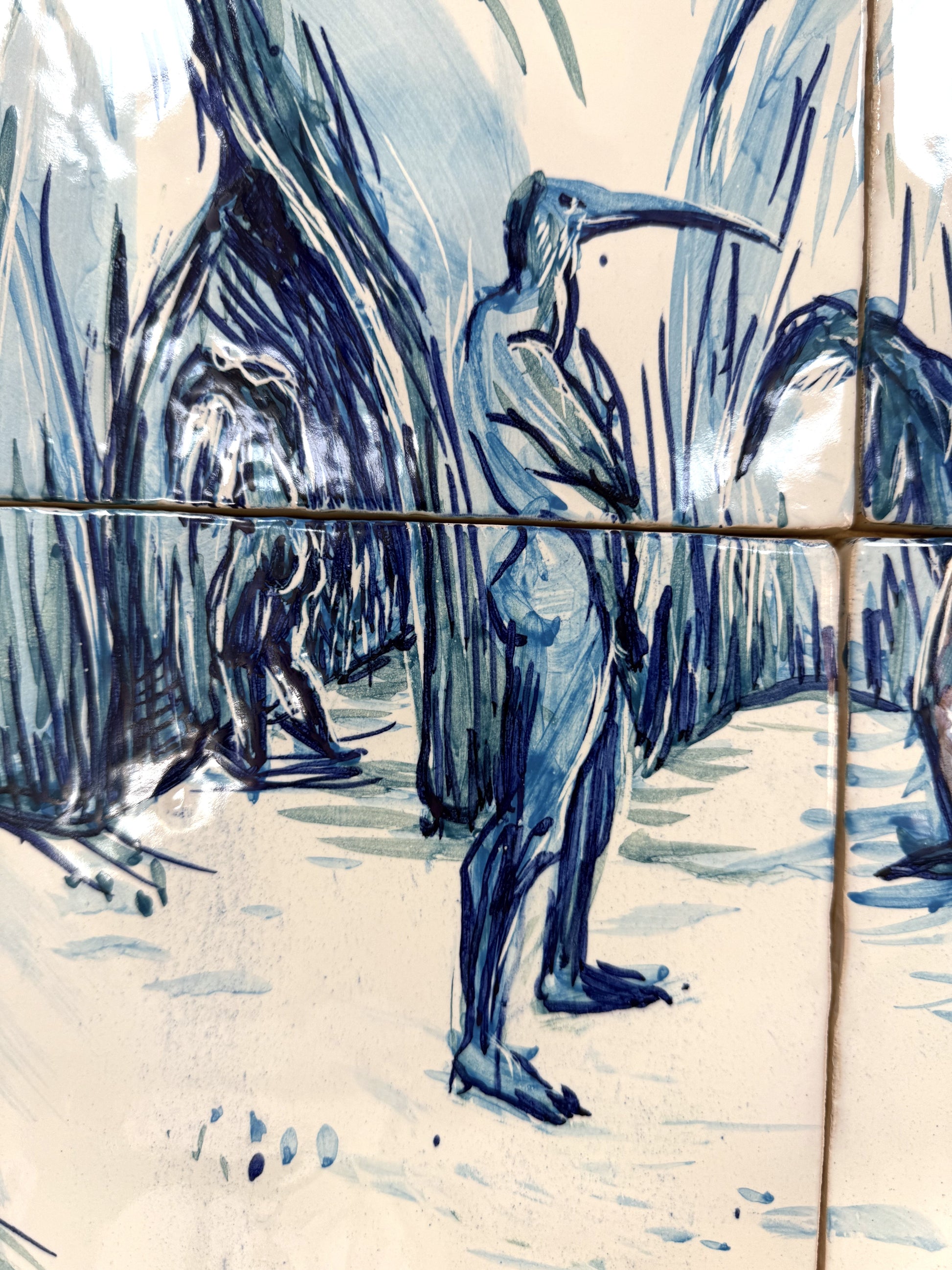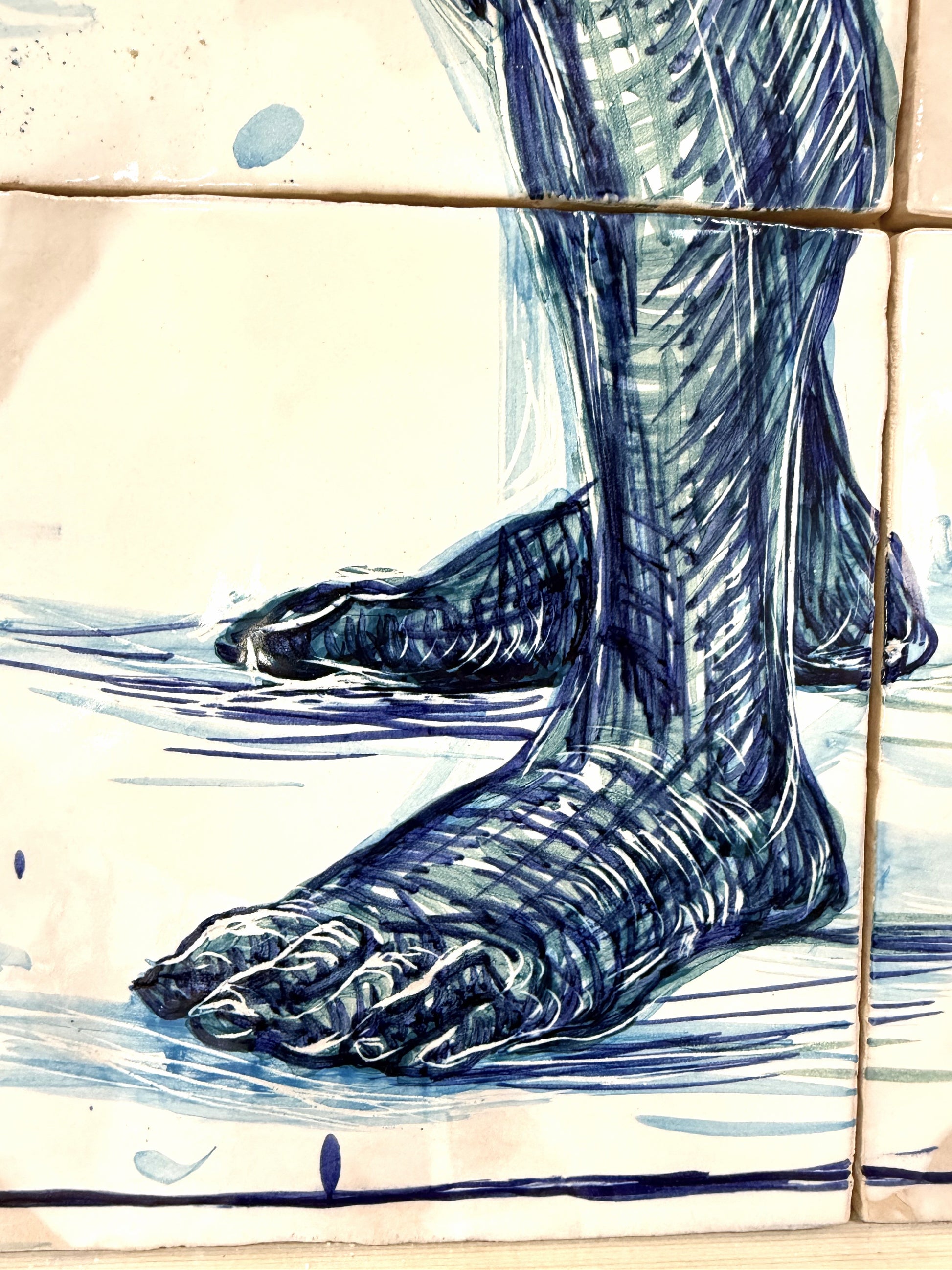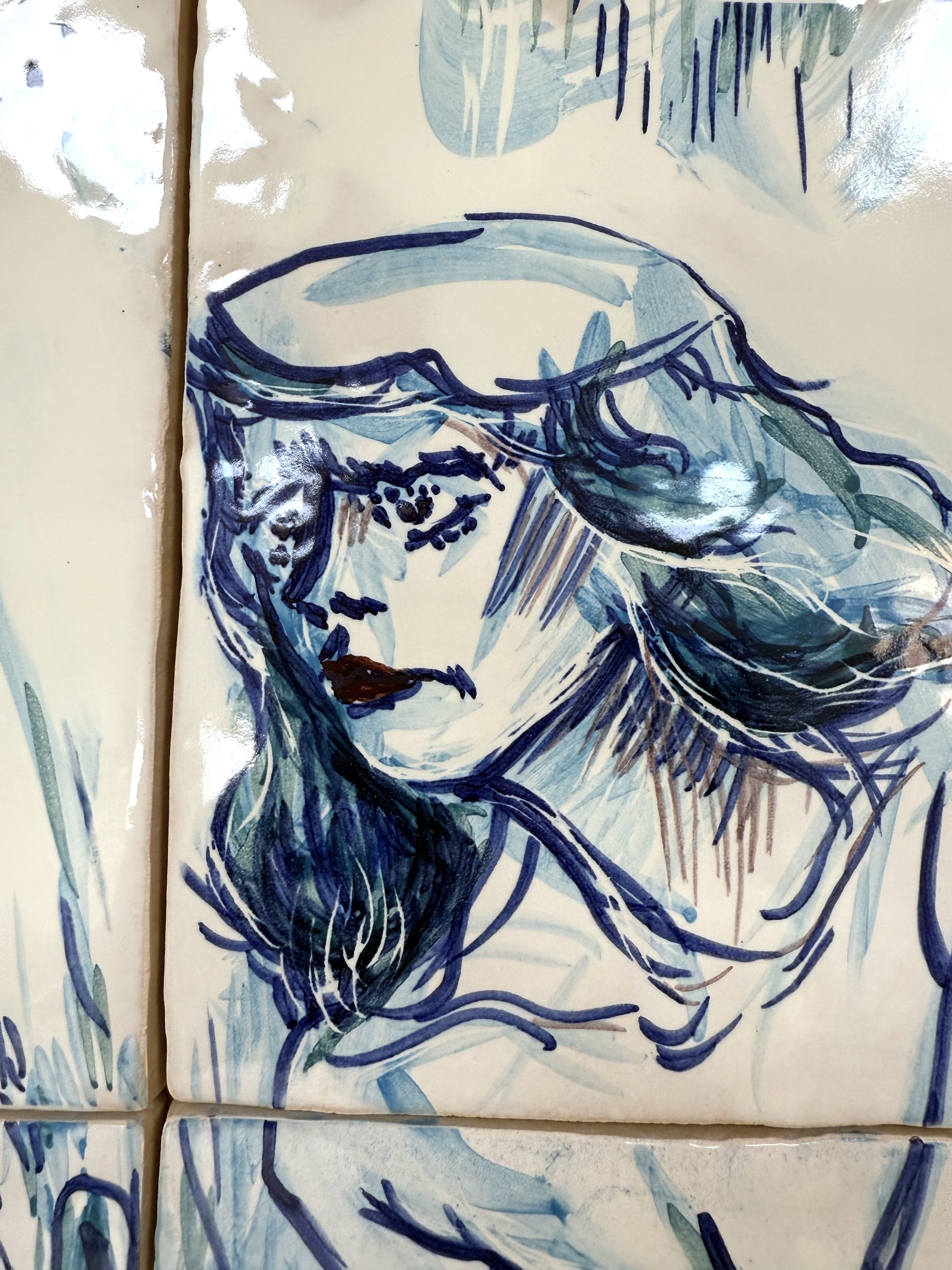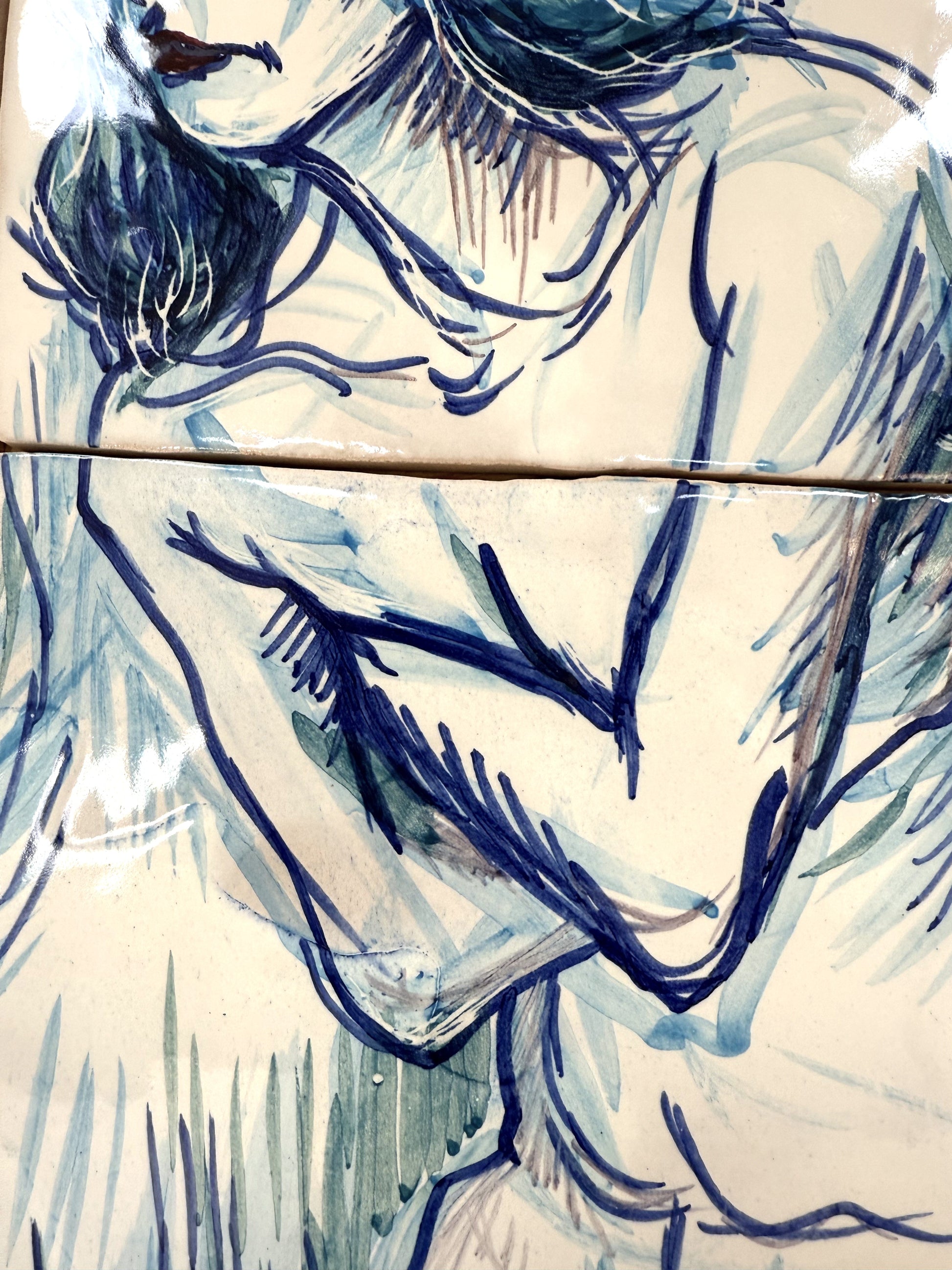 Técnica: Esmalte sobre cubierta sobre bizcocho de 20 x 20 x 0,2 cm de barro blanco.