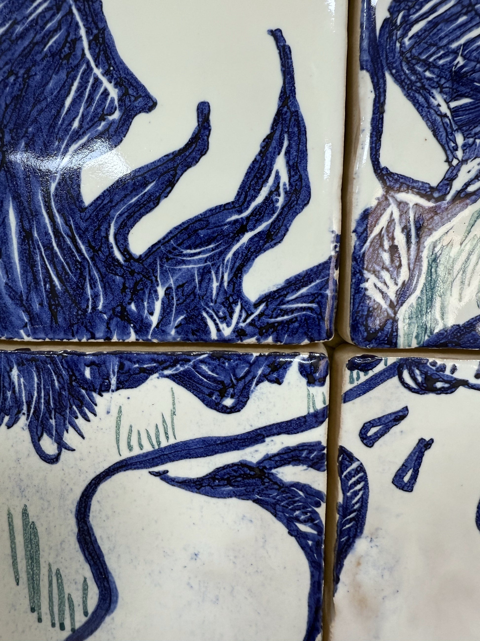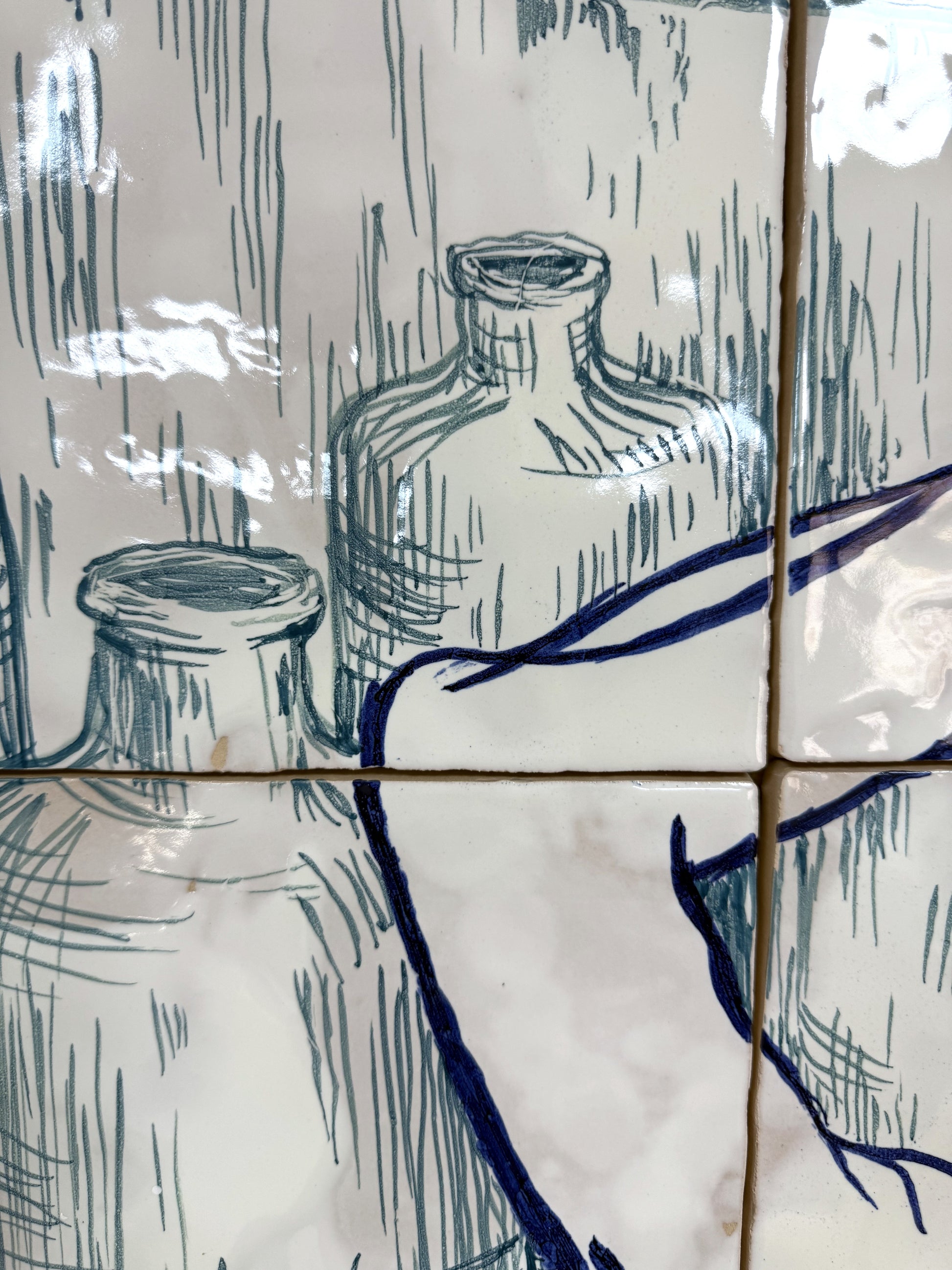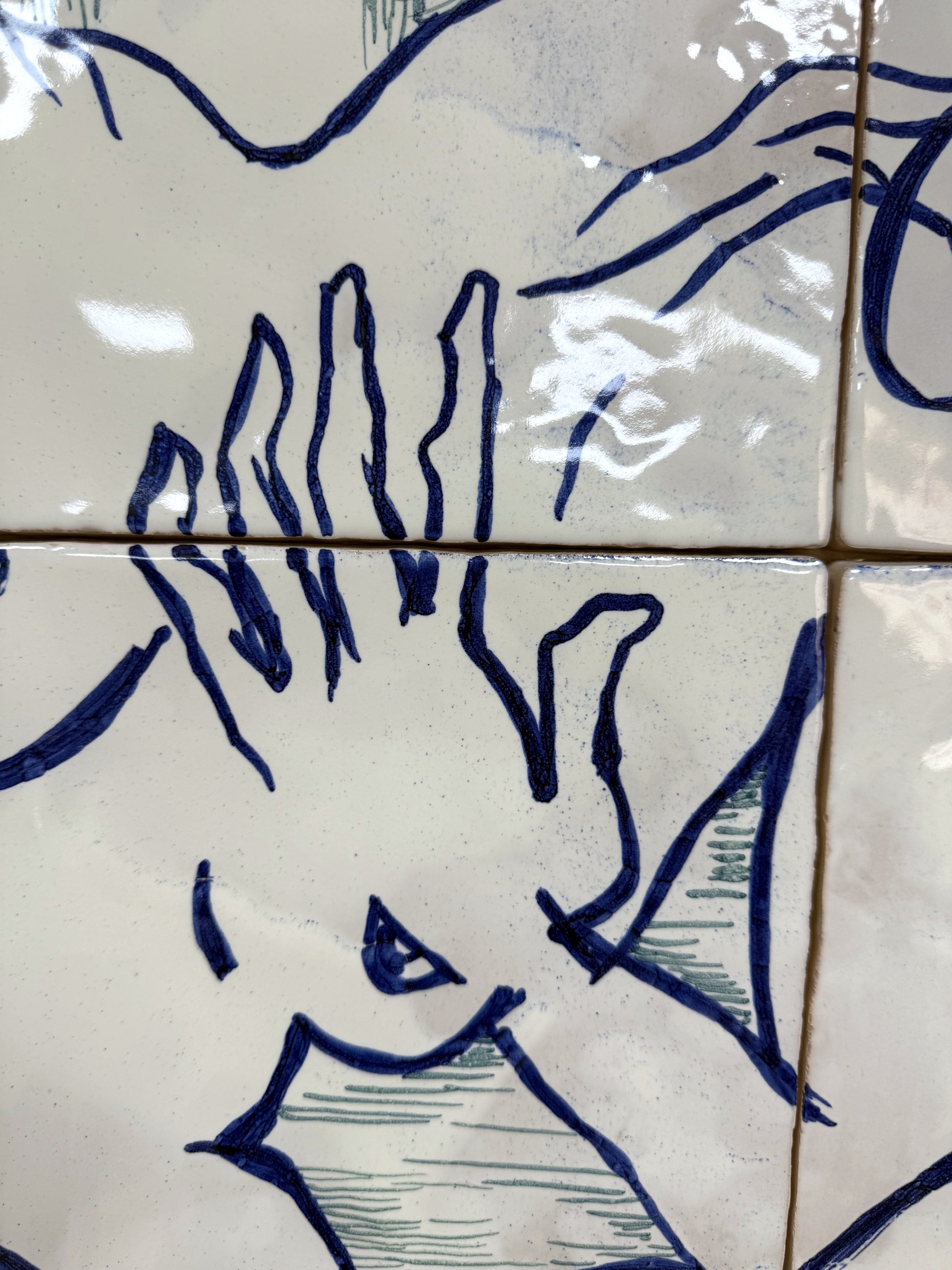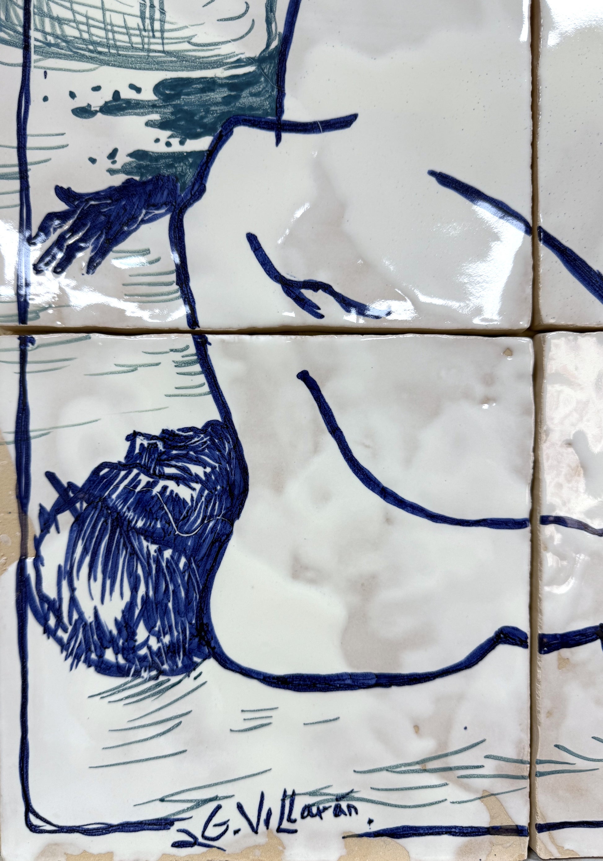 Técnica: Esmalte sobre cubierta sobre bizcocho de 20 x 20 x 0,2 cm de barro blanco.