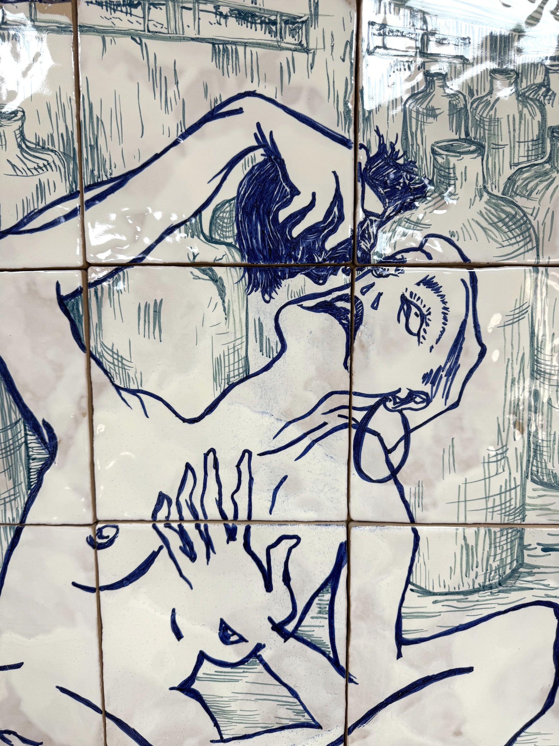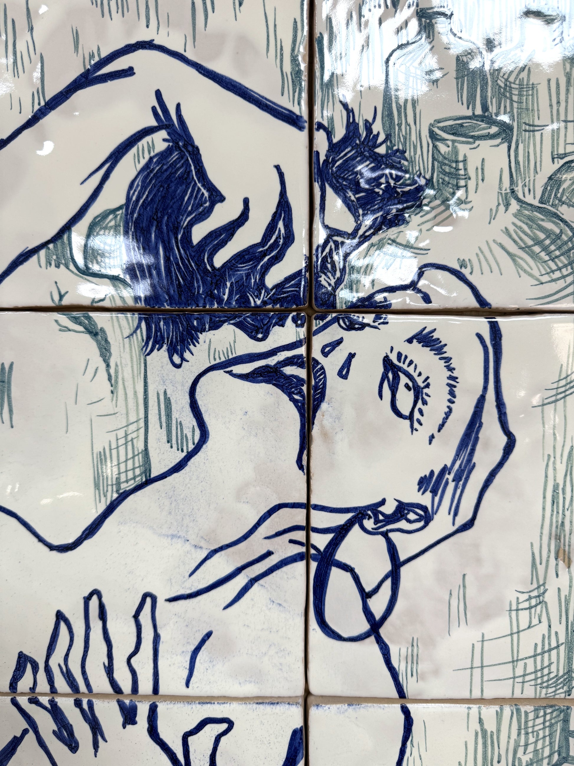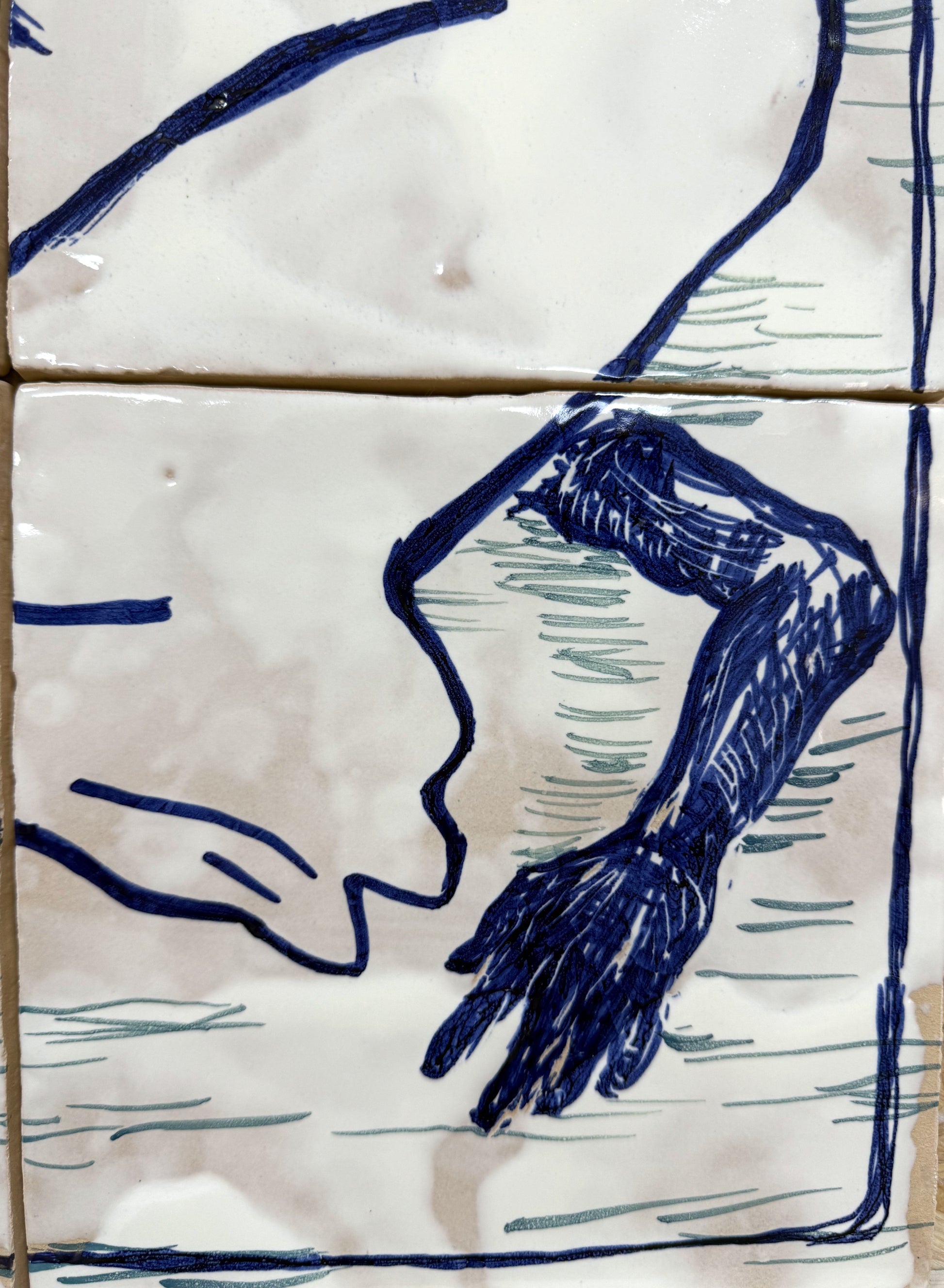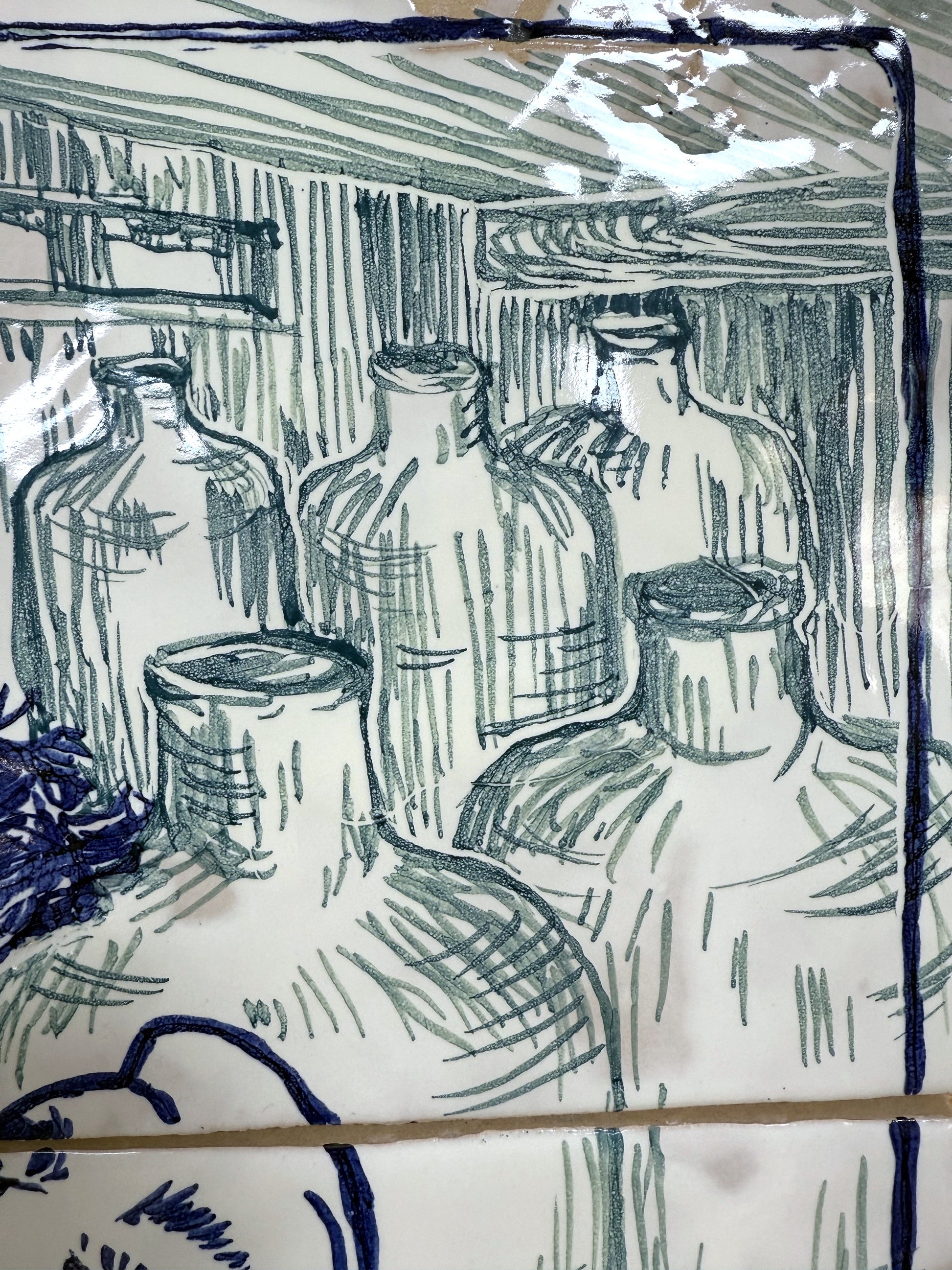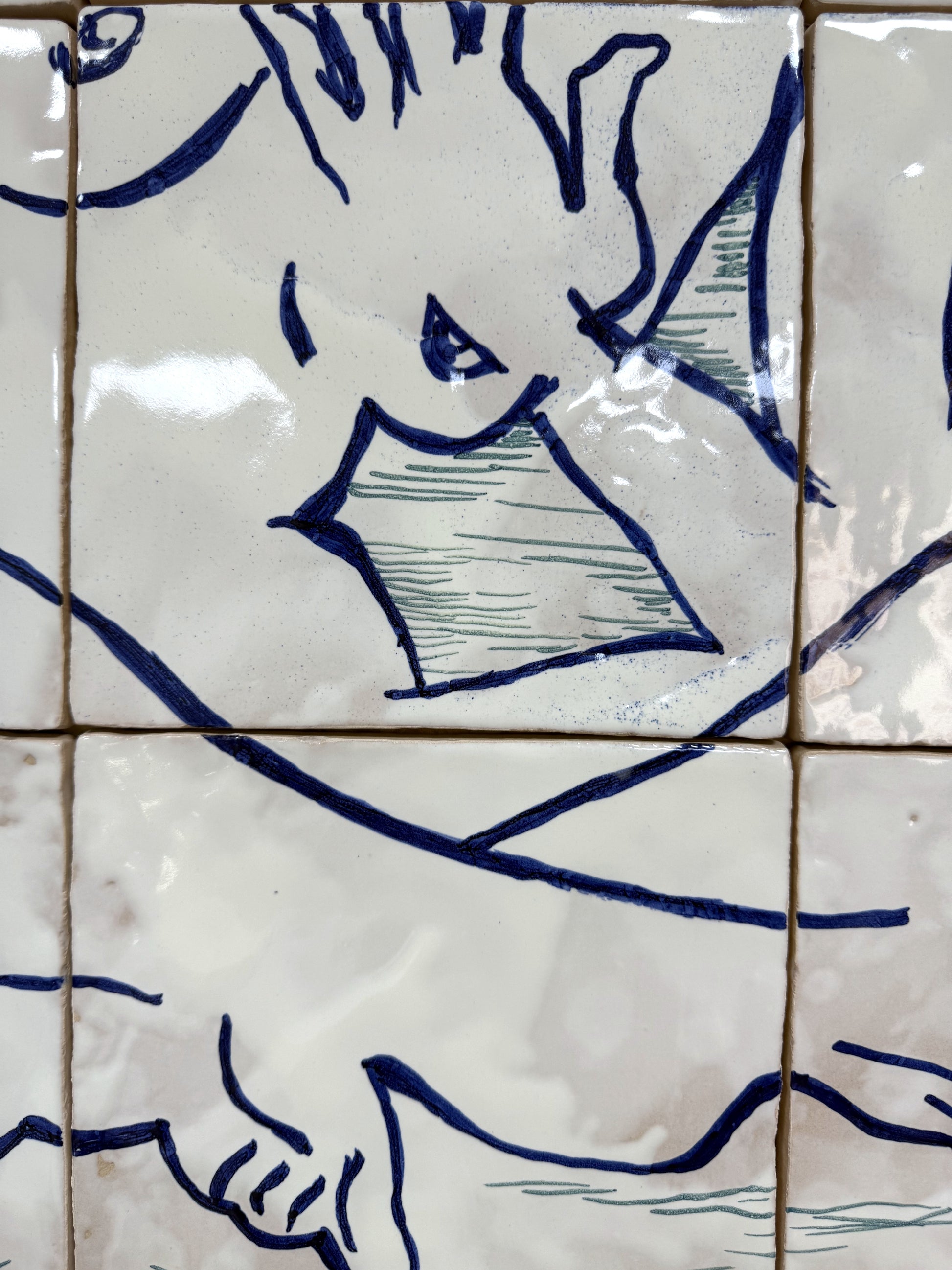 Técnica: Esmalte sobre cubierta sobre bizcocho de 20 x 20 x 0,2 cm de barro blanco.