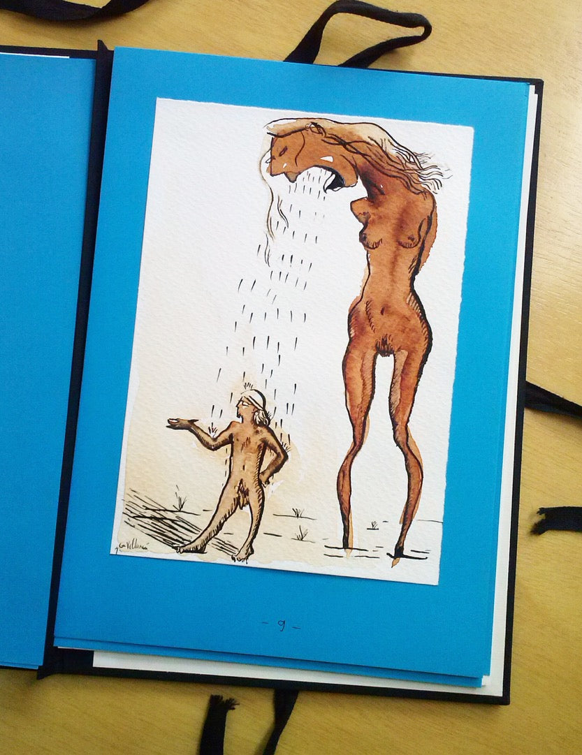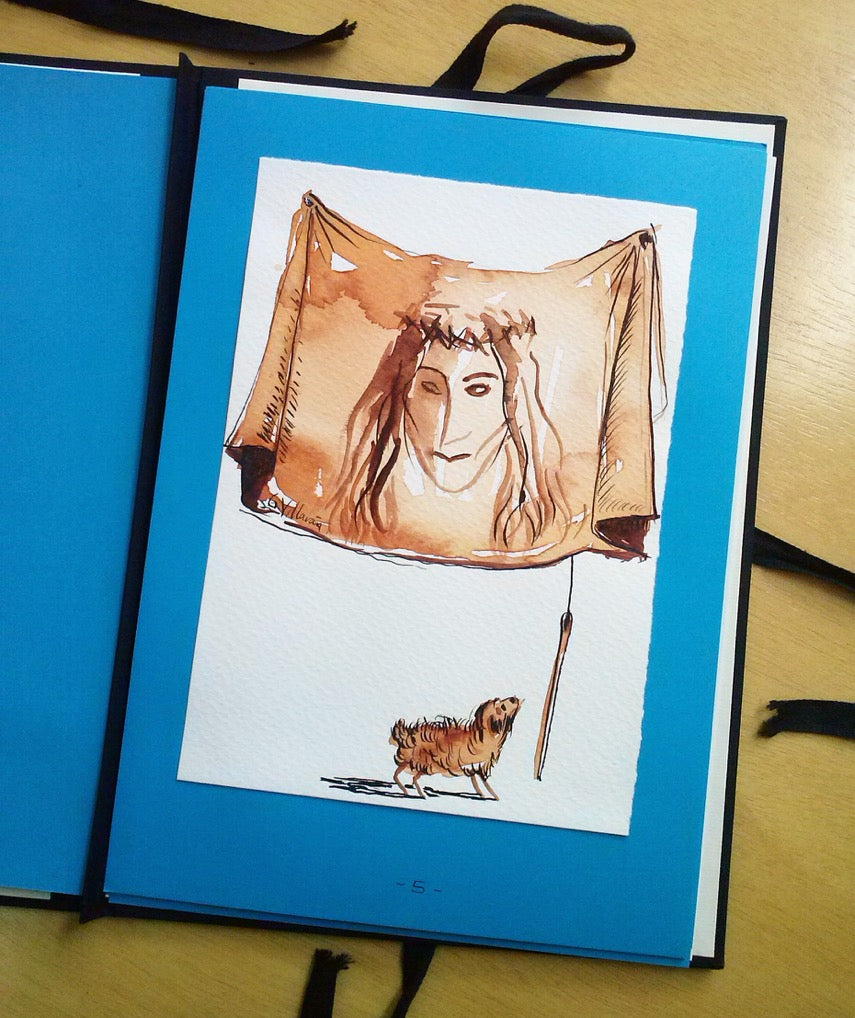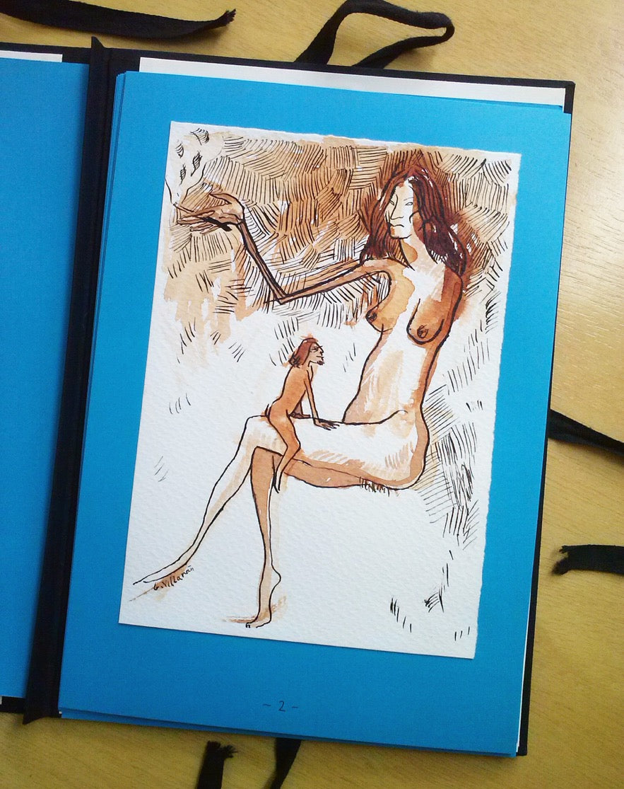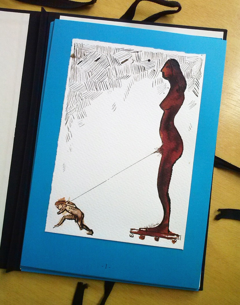 Técnica de realización: Tintas y anilinas aplicadas con cáñamo, plumillas y pincel sobre papel de 350 gramos