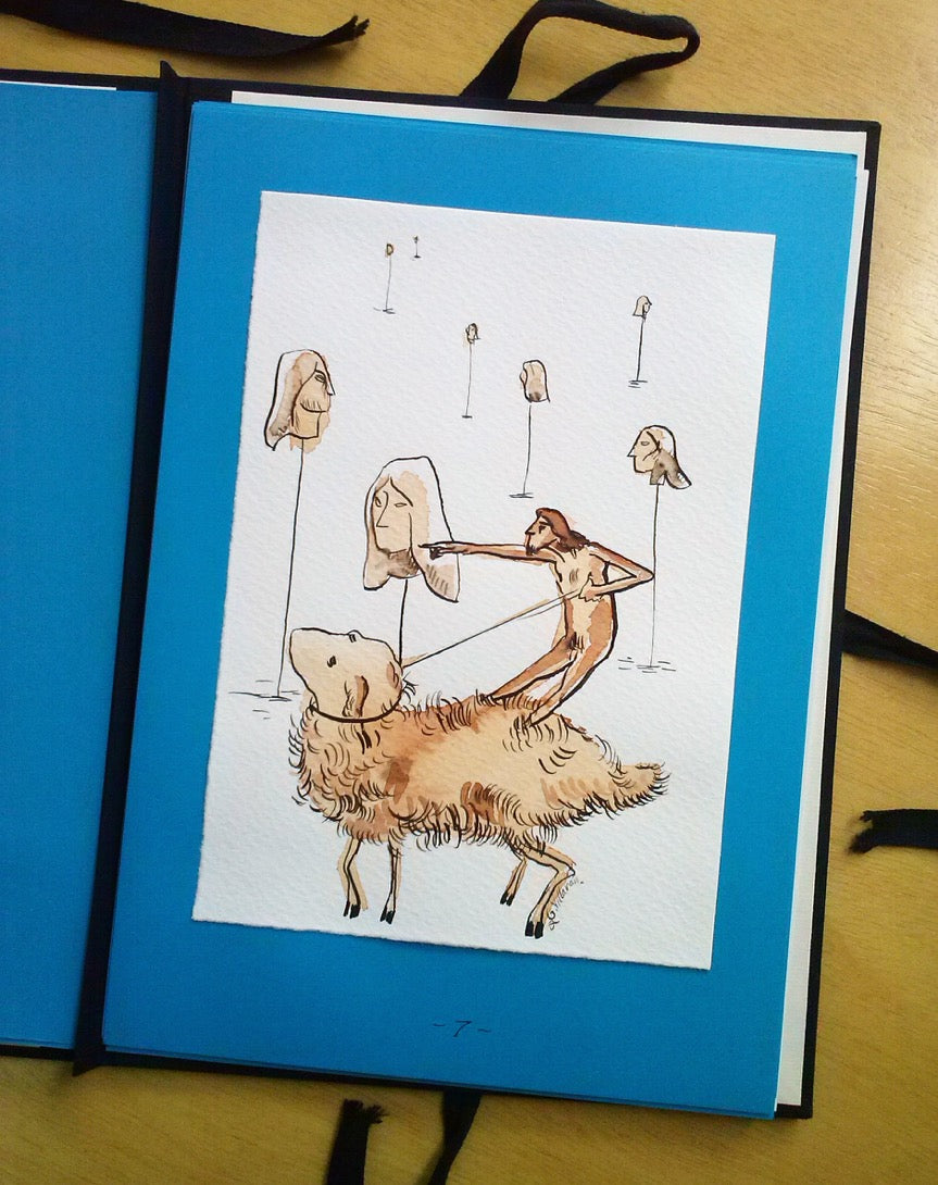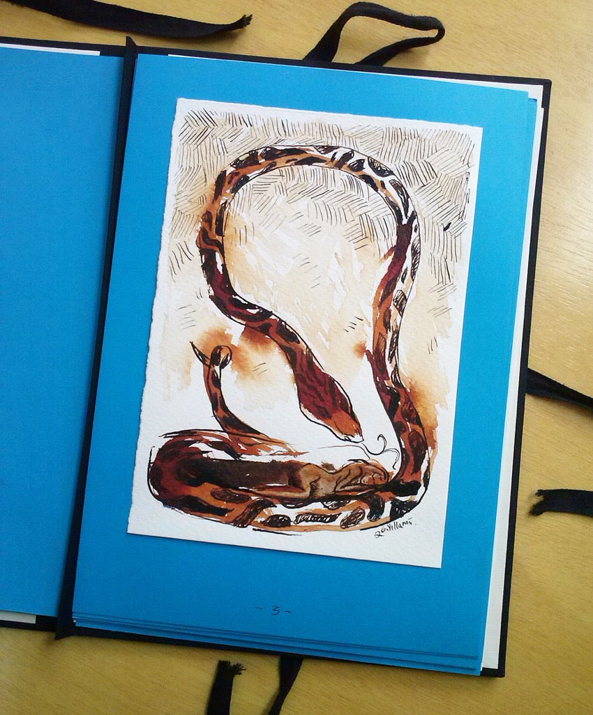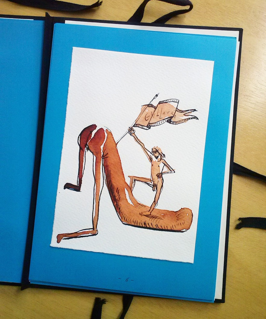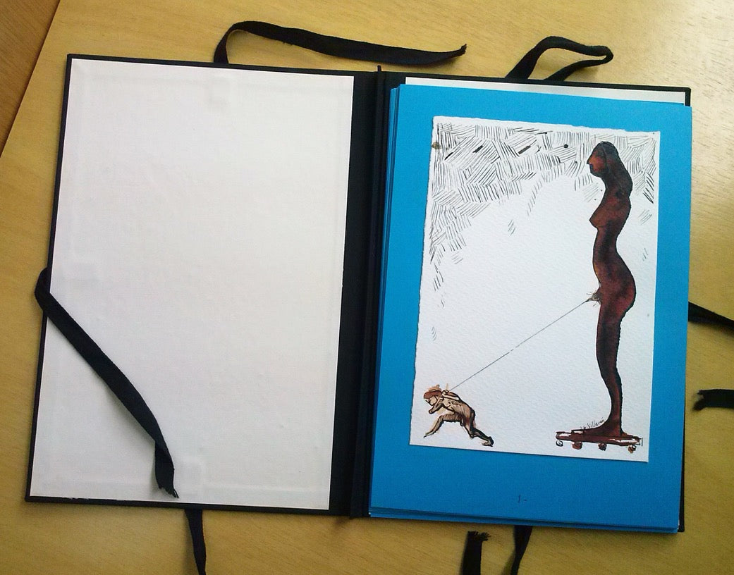 Técnica de realización: Tintas y anilinas aplicadas con cáñamo, plumillas y pincel sobre papel de 350 gramos