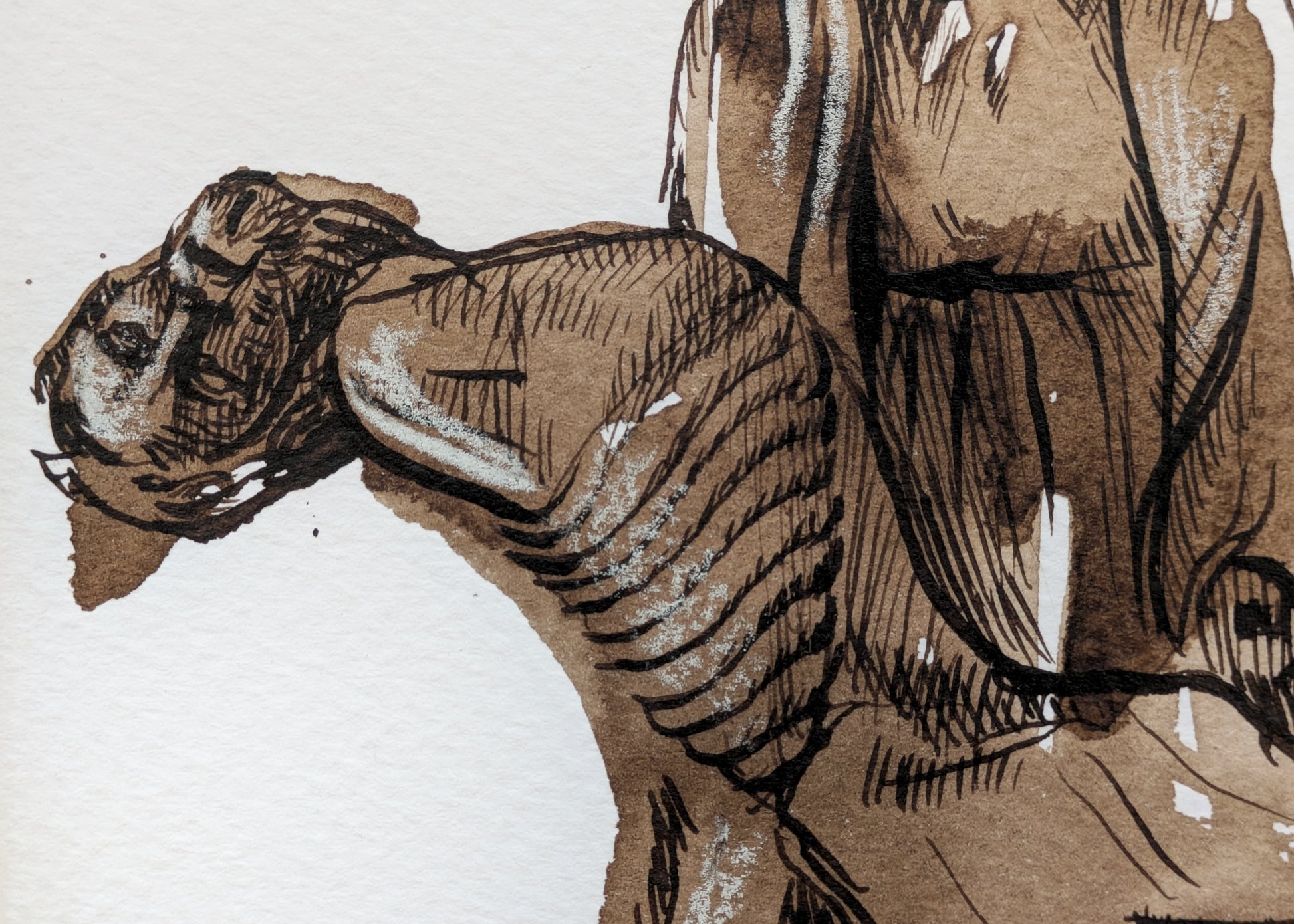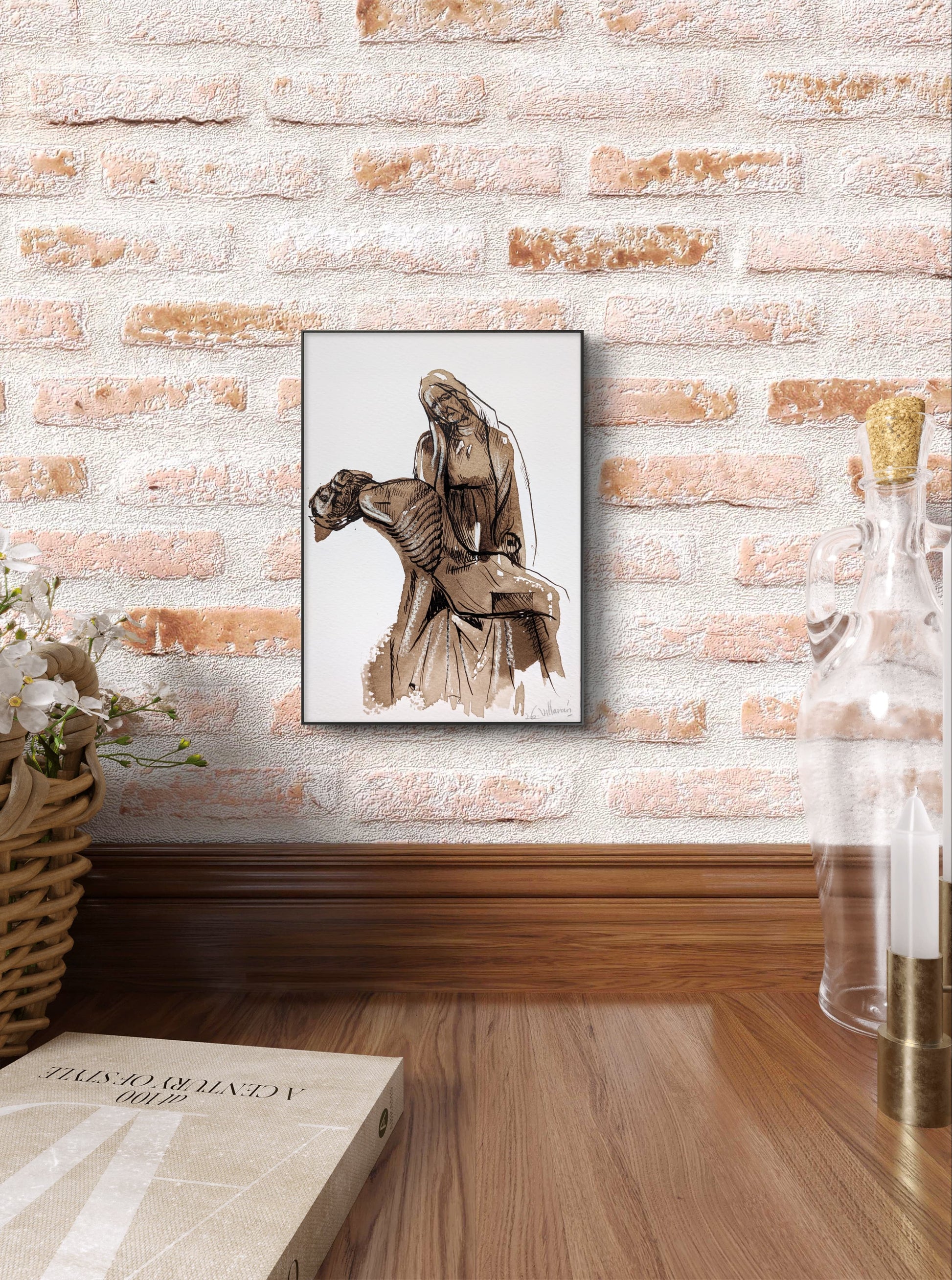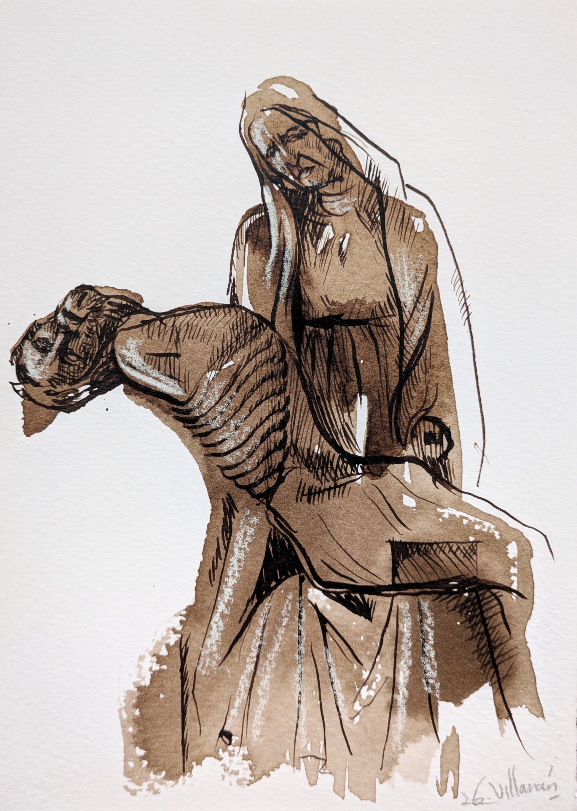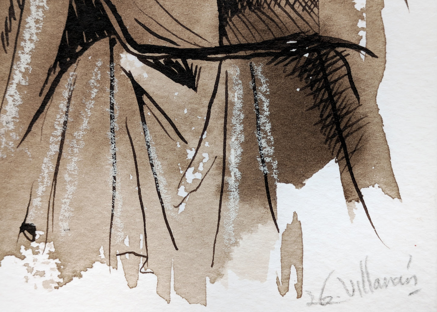 Técnica: nogalina, tinta y lápiz conté blanco
