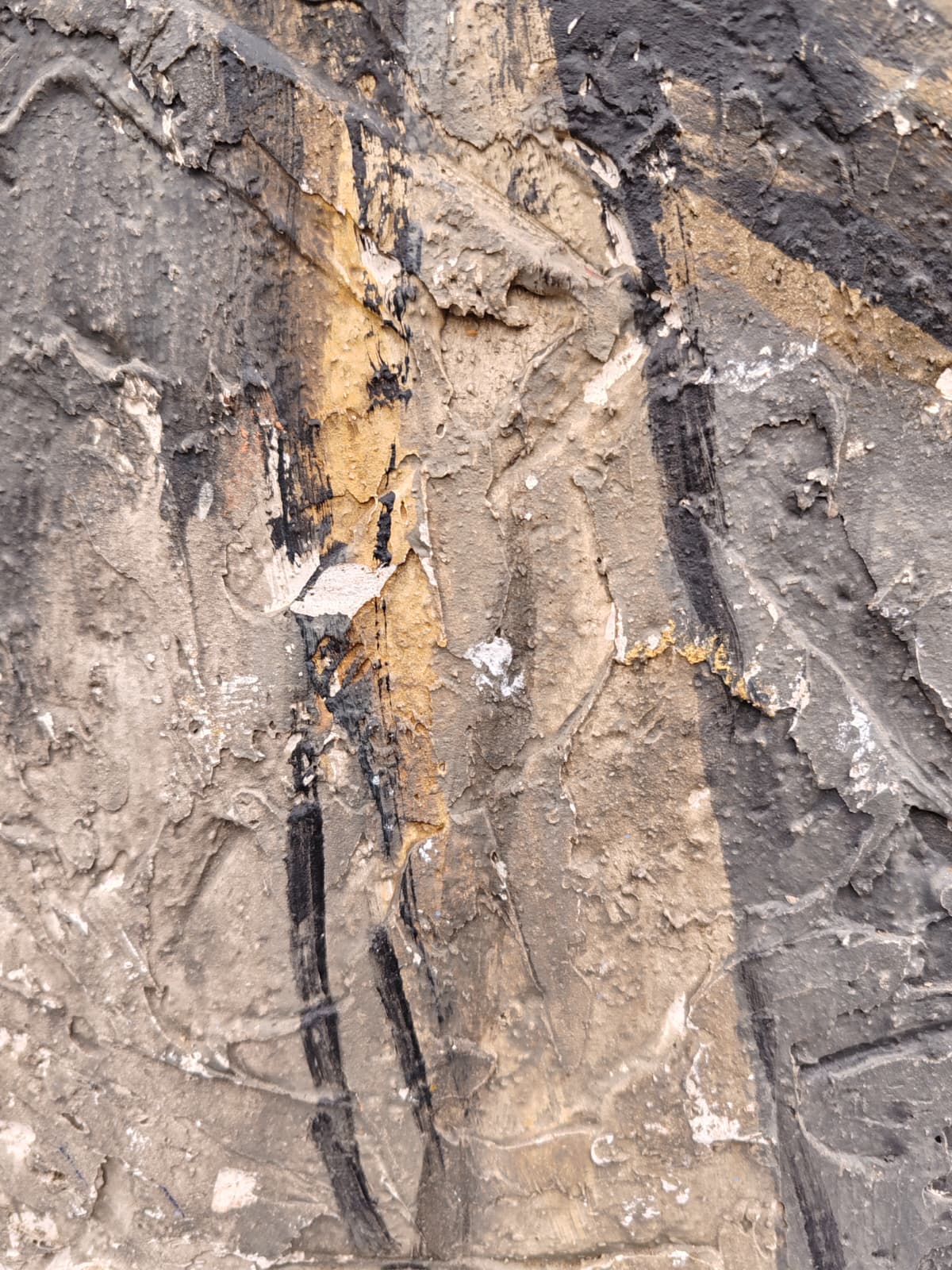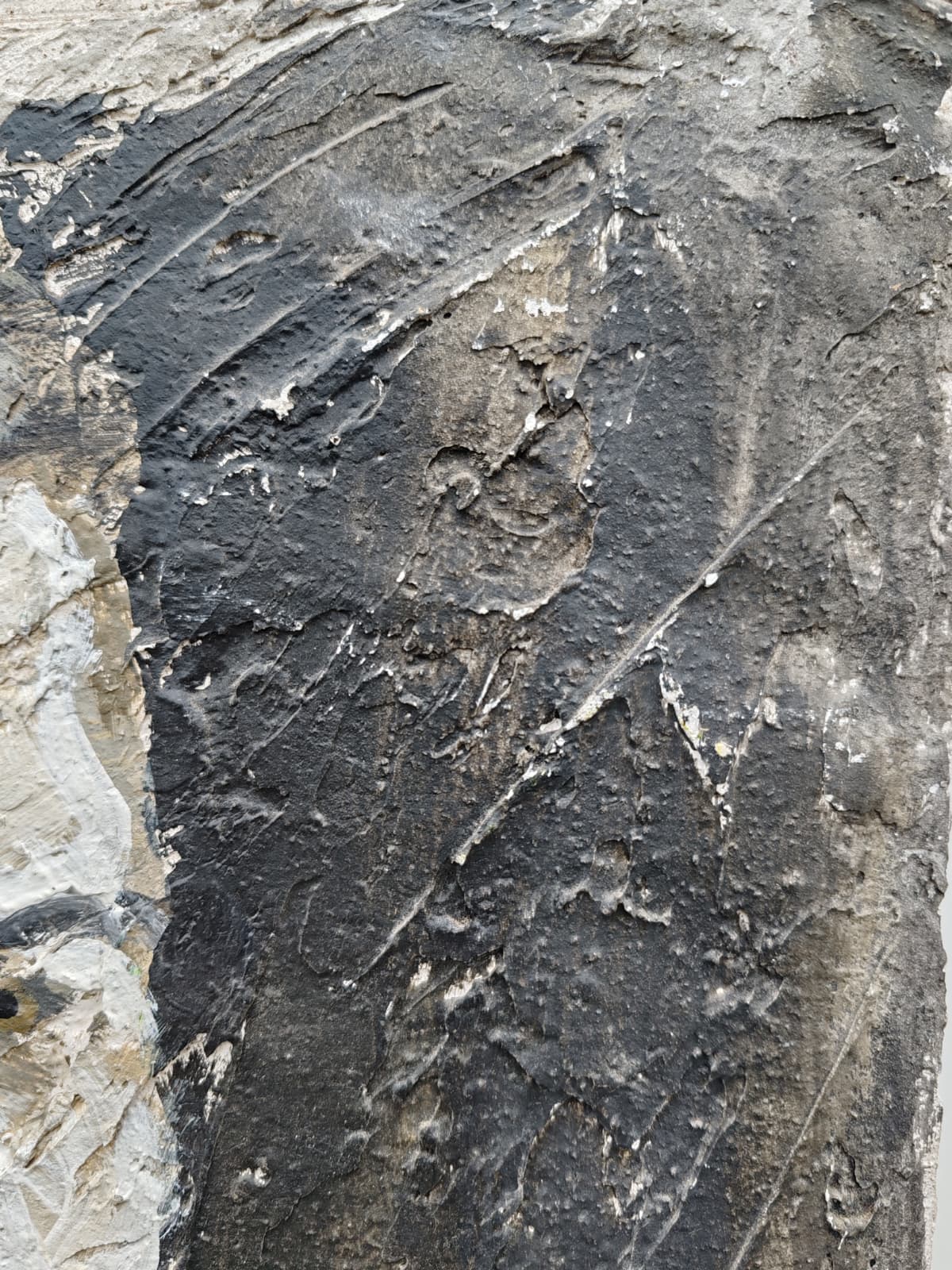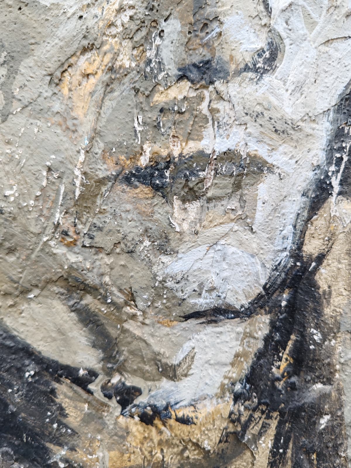 Esta pieza es puro experimento y ruido visual. Retraté a un Paco Valera muy joven sobre una tabla, pero el alma del cuadro es su textura radical. Utilicé yeso para crear un relieve potente, lo pinté con acrílicos y después comencé a rayar la superficie para generar esa vibración y ese "ruido" que buscaba entonces. Es una obra física, casi escultórica.