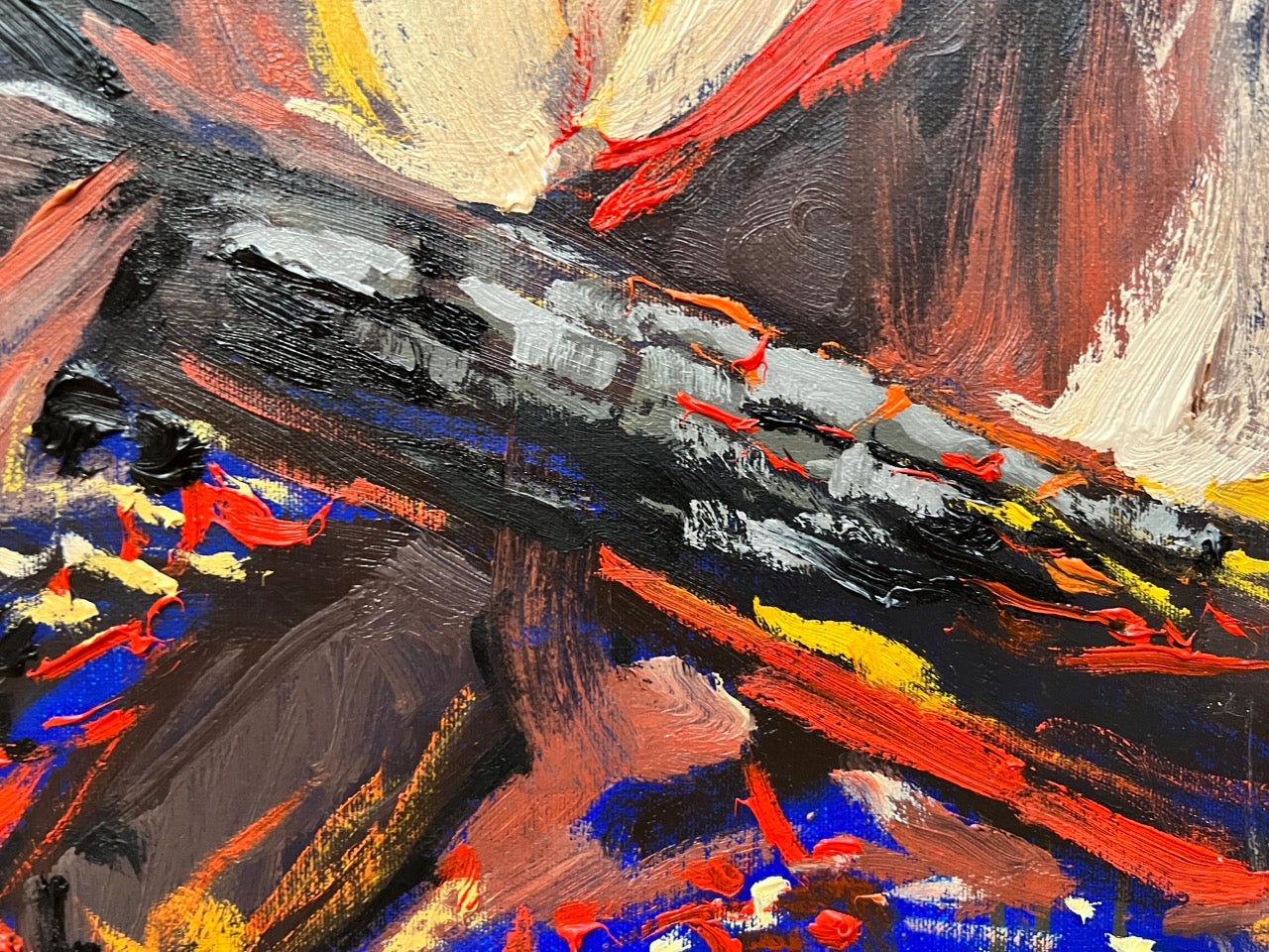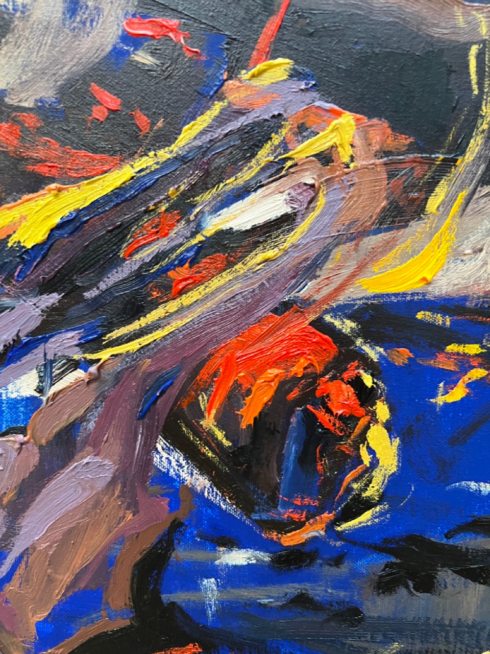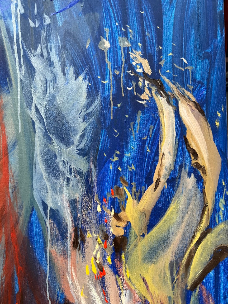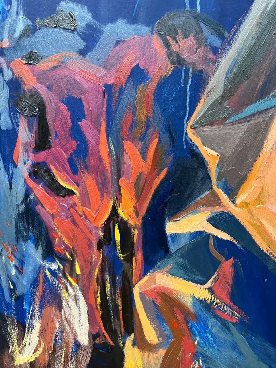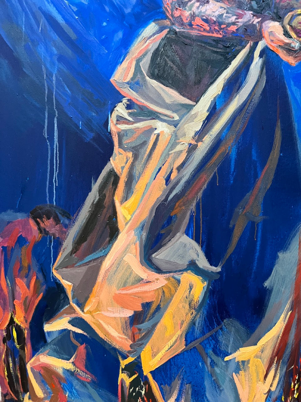 Ter aparece en esta imagen como Santa Lucía. Según cuenta la leyenda entregó todos sus bienes a los pobres y se sacó los ojos por no querer casarse con el hombre que eligieron para ella. Pero Dios vio su pureza y se los restituyó por otros aún más bellos. Los ojos en la bandeja de Ter simbolizan su mirada siempre distinta hacia el mundo. El cónsul Pascasio quiso que la llevasen a un lupanar para ser violada, ya que se negó a ofrecer ofrenda a sus dioses paganos ni tampoco quería casarse, pero ella dijo “Si la mente no consiente, el cuerpo no quedará mancillado”. Intentaron moverla con mil hombres pero no lo consiguieron. También lo intentaron con 2000 bueyes y tampoco. Esos bueyes, que simbolizan las vicisitudes que tienen los youtubers para hacer su trabajo, están simbolizados en el cuadro por los dos cráneos de la parte inferior. También llamaron a los magos y determinaron rociarla con orín caliente, lo cual tampoco dio resultado. Finalmente la intentaron quemar viva pero no ardía. Por último le clavaron una daga en la garganta y aún así seguía hablando antes de morir. La parte inferior de la obra simboliza todas las ideas que bullen en la cabeza de Ter, y que se cristalizan en sus vídeos. Su cabeza está iluminada como símbolo de su trabajo brillante. En la parte inferior aparecen dos hojas de palma, que simbolizan el oasis, la vida, y además es el atributo de los primeros santos. En este caso simbolizan a los primeros youtubers culturales que lograron éxito y repercusión en la plataforma.
