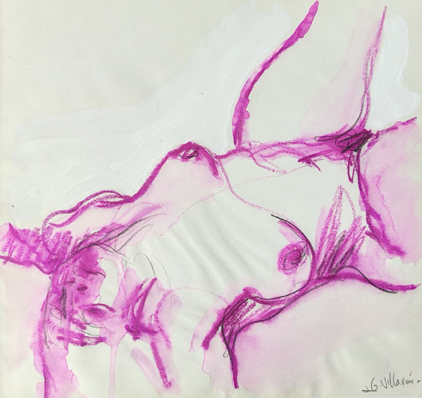 Técnica: Lápiz conté, acrílico y ceras acuarelables