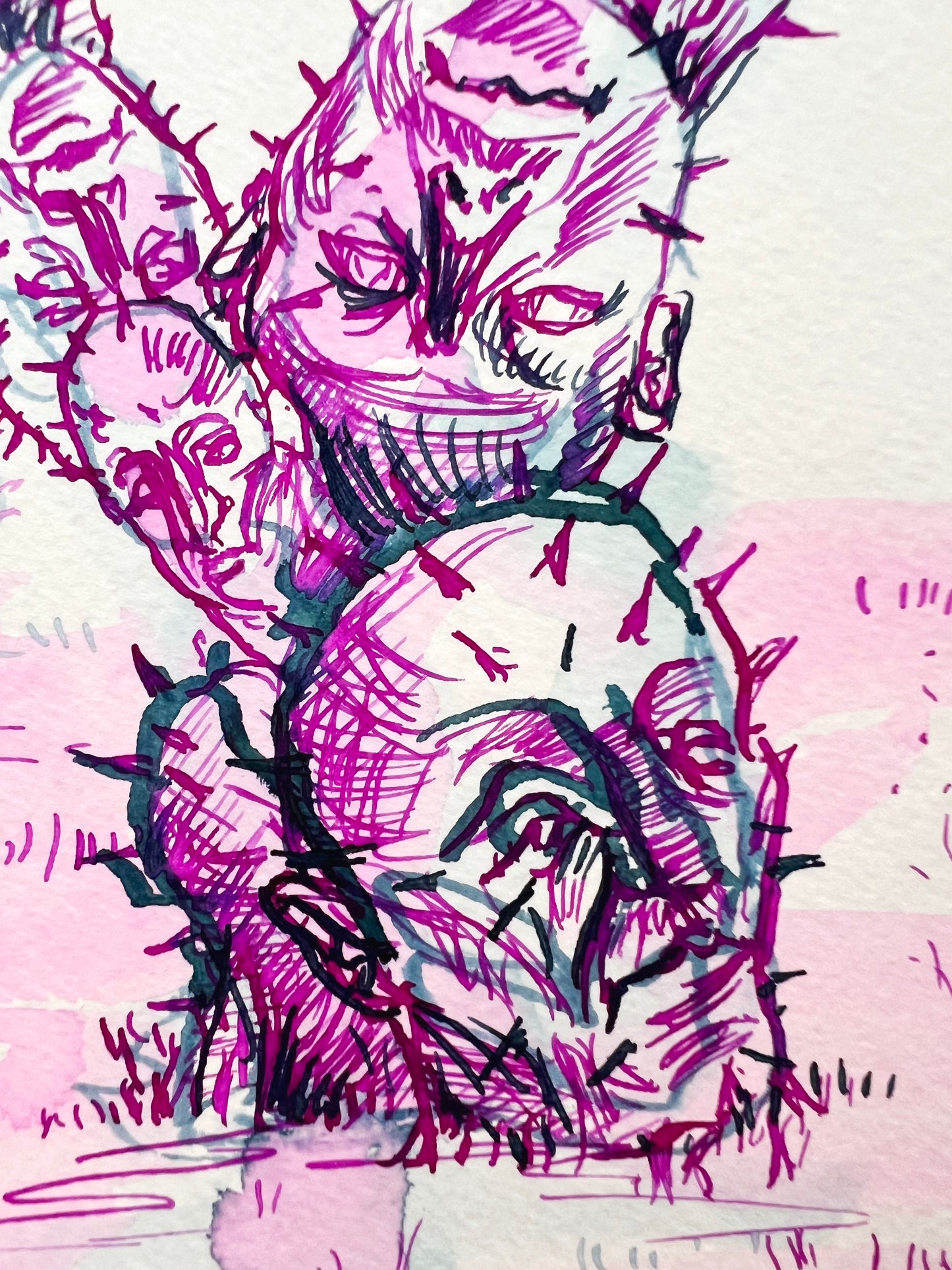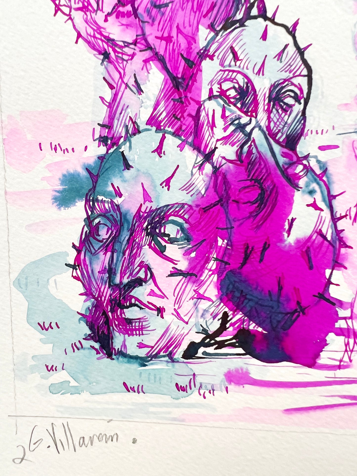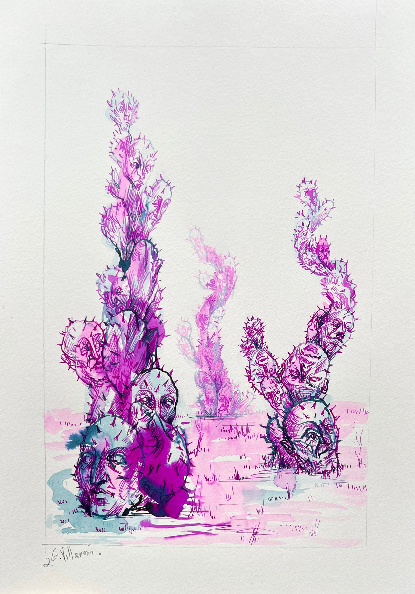 Técnica: Anilinas, plumilla y pincel